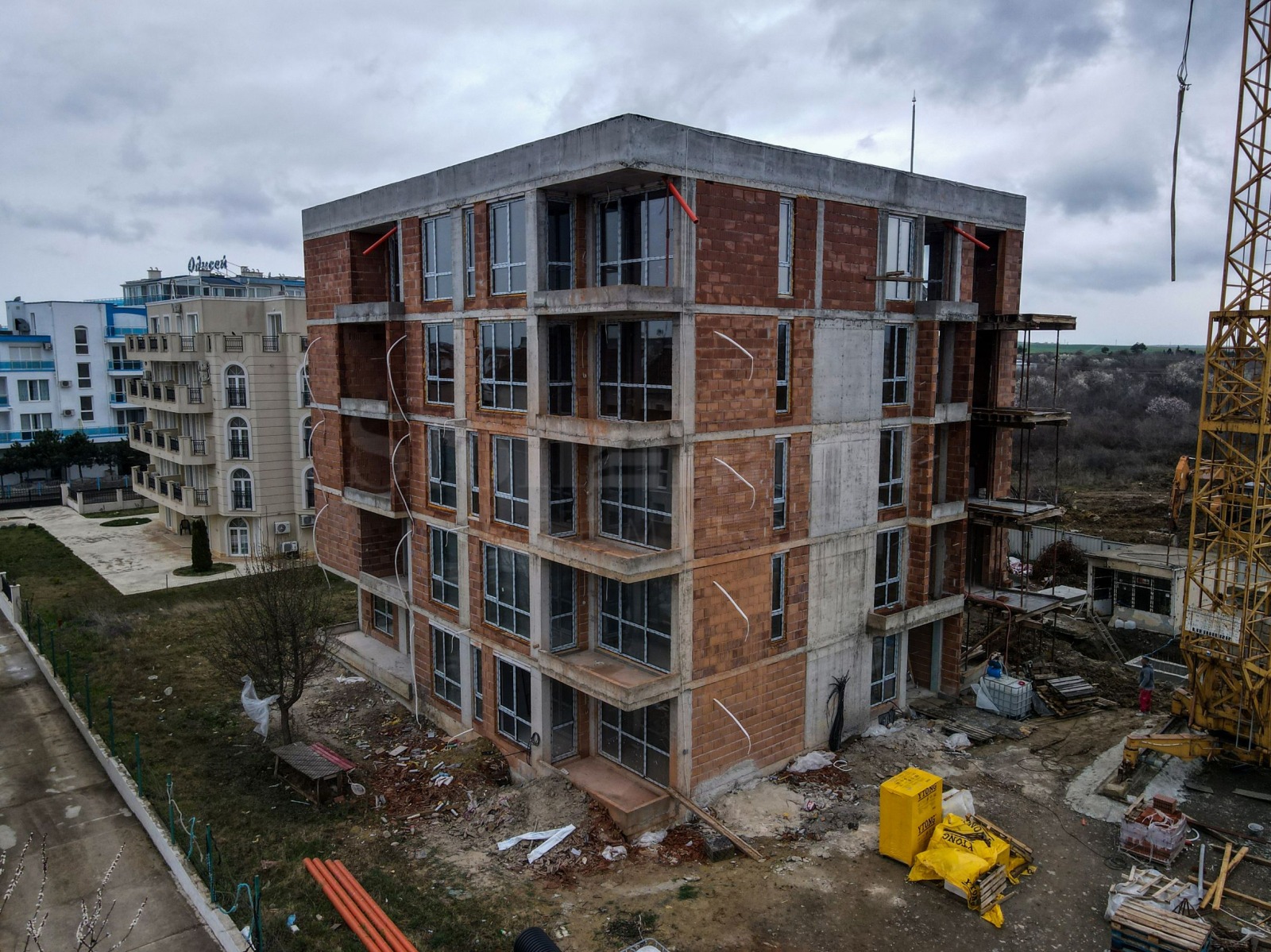 Сградата е на 250 метра от плажа, в непосредствена близост до магазин, автобусна спирка, спортен терен, магазини, ресторанти и други удобства.