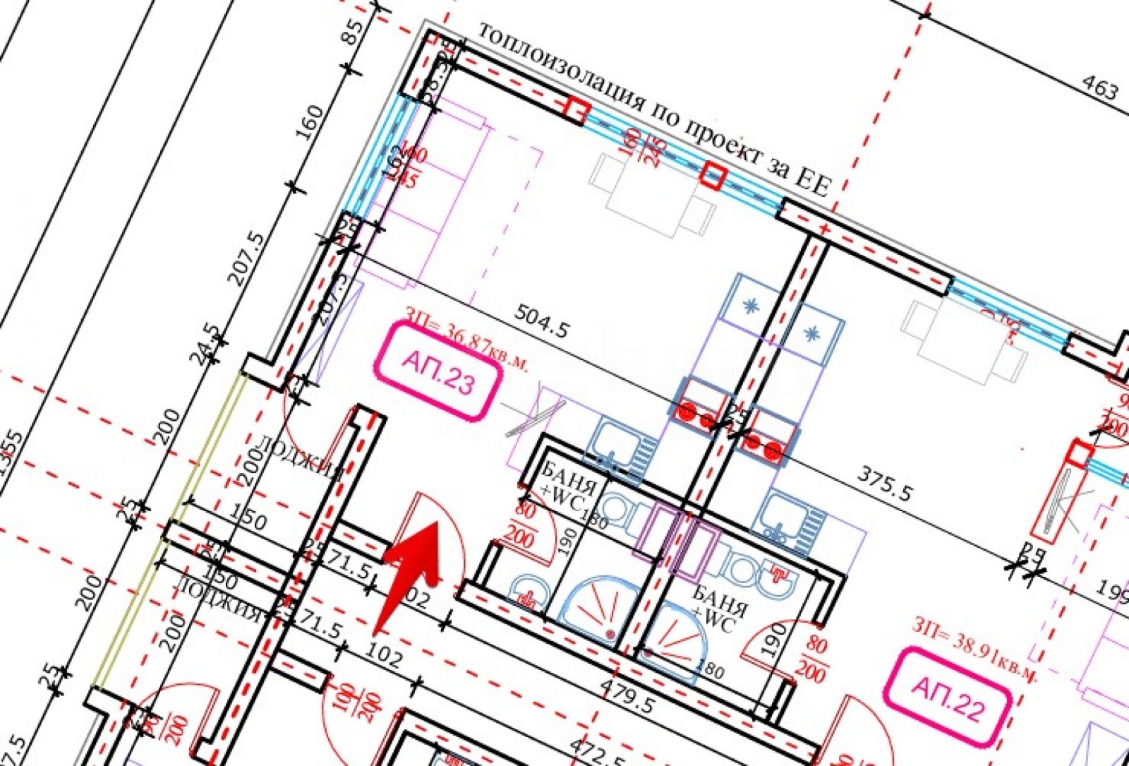 Чиста площ - 36.87 кв.м;