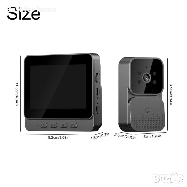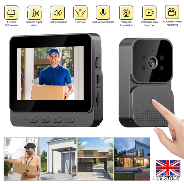 4.3" Безжичен, интелигентен видеозвънец с камера и 4.3" монитор
