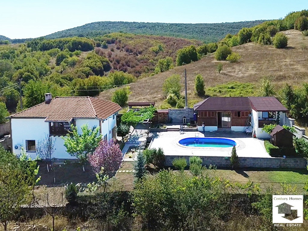 ЕКСКЛУЗИВНО! Предлагаме за продажба изключителен имот, разположен сред живописна гориста местност, само на 10 км от старопрестолния град Велико Търново. Къщата се намира в спокойно и зелено селище, което предлага чист въздух, тишина и уединение идеалното място за отдих или целогодишно живеене, в непосредствена близост до градски удобства.