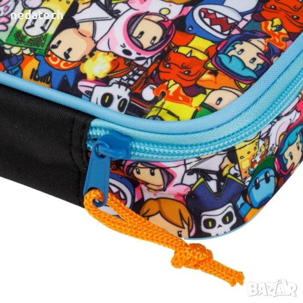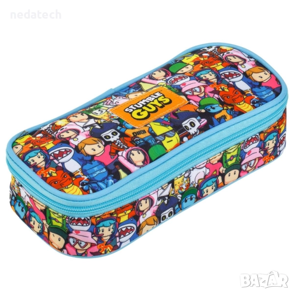 Несесер с тюркоазен цип, без вътрешни разделители, с особено мека горна повърхност с цветни дизайни на Stumble Guys. Идеална за ученици от началното училище и тийнейджъри.