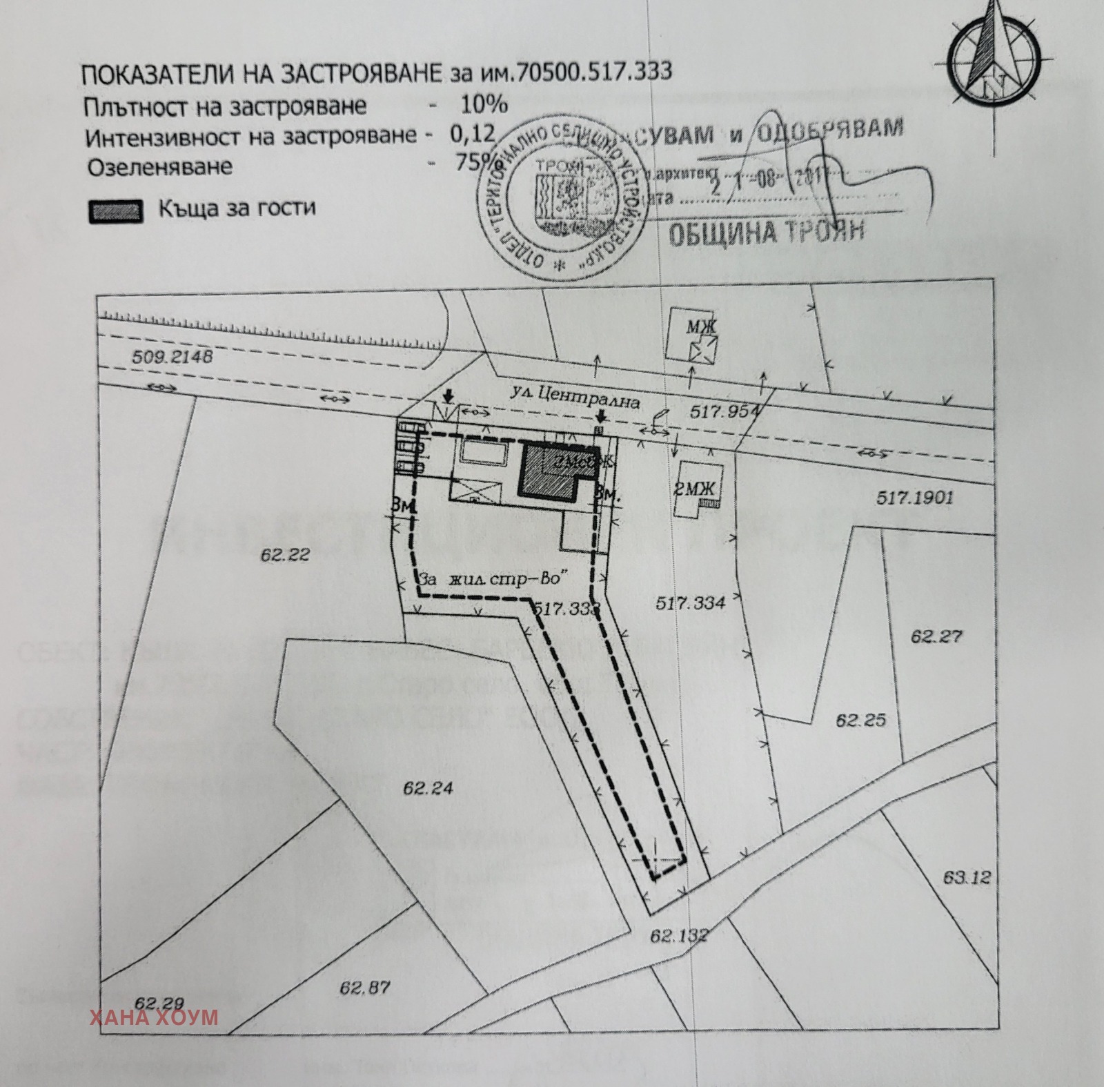 Собственикът има актуален ПУП (подробен устройствен план) за имота, тъй като е предвиждал реконструкция и изграждане на къща за гости с навес, басейн и барбекю. Разрешителното за строеж е от 2017-та година и може да бъде подновено, ако бъдещият собственик реши да изпълни този проект.