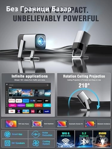 Нов Смарт проектор Netflix 1080P WiFi Bluetooth Dolby звук домашно кино