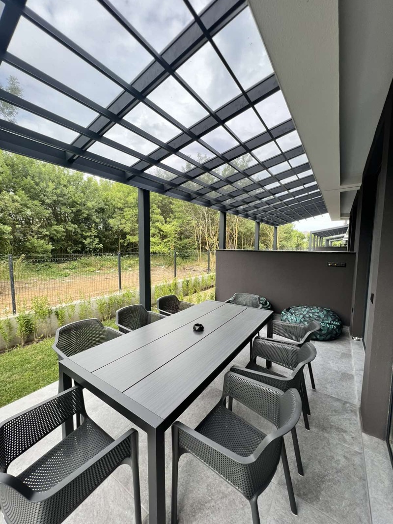 Парцелът в който е разположена къщата е 230 м2, къщата е с РЗП - 150 кв.м. и веранда 19.5кв. м. Покрита с алуминиева пергула с триплекс стъкла к алуминиеви ламели.
