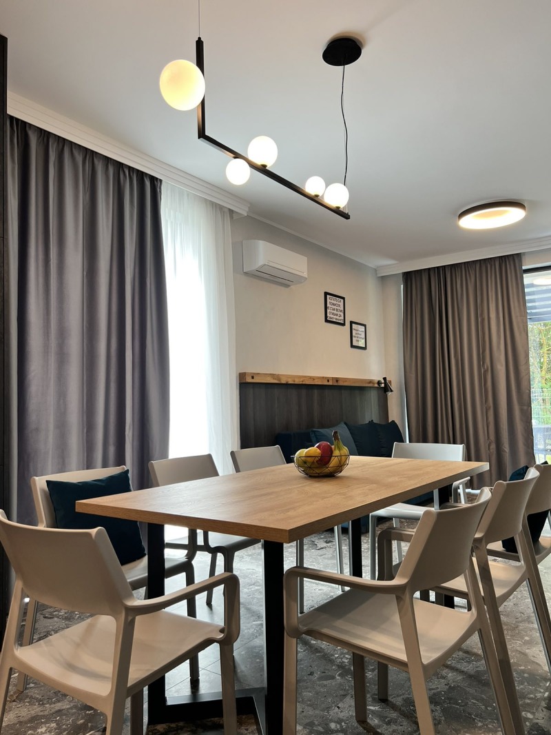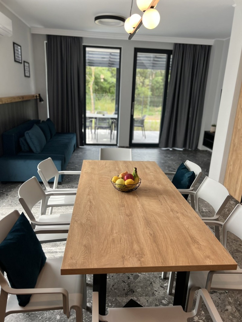 Вилата е завършена с първокласни строителни материали, с качествени и стилни довършителни работи, осветление и бутиков дизайн. Всяка от къщите има два броя слънчеви панели за топла вода Виесман от най-висок клас с 300литра бойлер и най-модерно управление. Къщите са с климатични системи Тошиба ейдж, хипериверторни, като външните тела са скрити в специални алуминиеви куфари. Подходящ вариант е както за живеене, лично ползване за летен семеен отдих, така и за отдаване под наем.