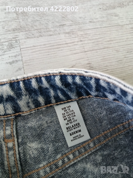 Детски къси дънки H&M, размер 146 см (10-11 г.). Имат връзки с копче отвътре за стягане в талията. Дължина - 29 см., ширина в колана - 32 см. В отлично състояние.