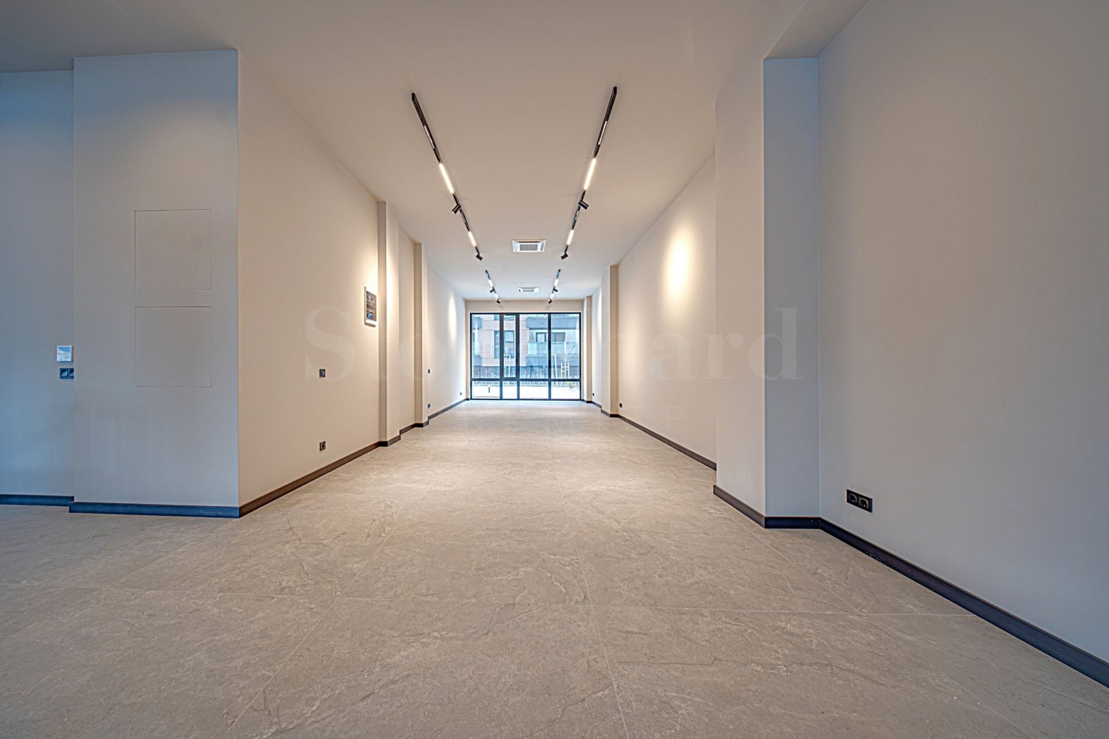 Магазин 2 е разположен на партерен етаж и има обща площ 153.19 кв.м, разпределена на две нива. Първото ниво се състои от търговска зона, а чрез вътрешно, самостоятелно стълбище се достига до ниво сутерен, като площта на долното ниво може да се организира като склад, шоурум, работна зона и др., със санитарен възел. Предлагаме варианти за преграждане на помещенията спрямо нуждите на новия собственик.