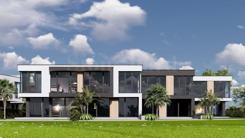 Представяме за продажба еднофамилна къща в модерен архитектурен стил, част от нов ваканционен комплекс от затворен тип, състоящ се от 37 жилищни сгради, обособени в самостоятелни дворове.