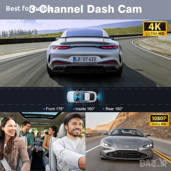 【3-канална 4K видеорегистратор и голям широкоъгълен обхват】 - SHRINLUCK ви предлага X5 предно-задната видеорегистраторна камера, която може да записва 4K Ultra HD предно видео + 1080P вътрешно видео + 1080P задно видео. Безжичната видеорегистраторна камера SHRINLUCK X5 може да ви помогне да четете ключови детайли по-ясно, като пътни знаци и регистрационни номера на превозни средства, осигурявайки ви по-добро удоволствие от шофирането и безопасност. Тази 3-канална автомобилна камера е оборудвана с 176° широкоъгълна предна камера и 160° широкоъгълна вътрешна и задна камера, записвайки всичко необходимо.