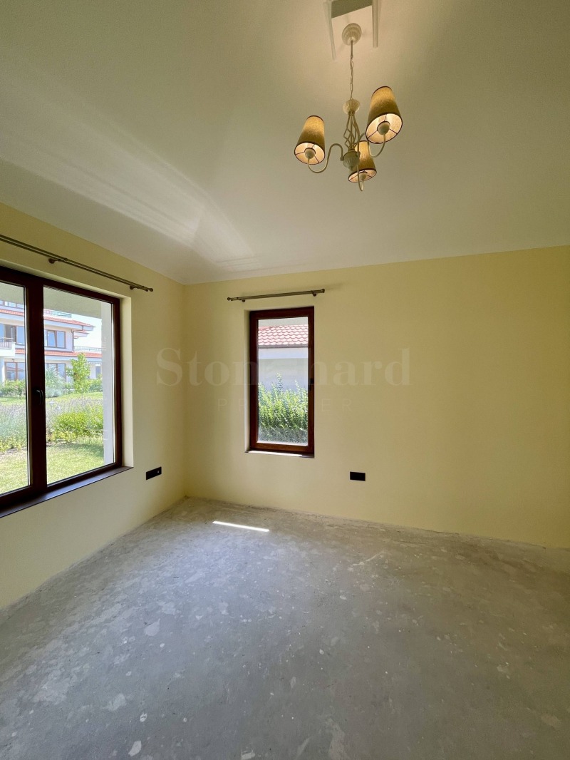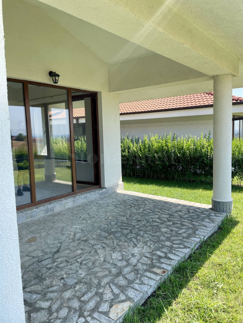 веранда.Вилата се предлага в степен на завършеност 'до ключ' - стени шпакловани и боядисани, подове с гранитогрес и ламинат, оборудвана бяна, поставени лампи, монтирани климатици. Интериорните врати се избират от новия собственик и са включени в цената.