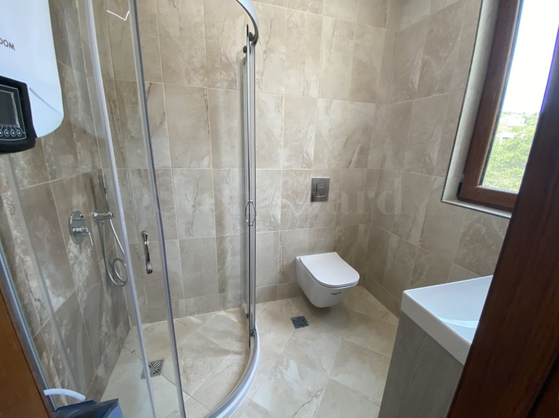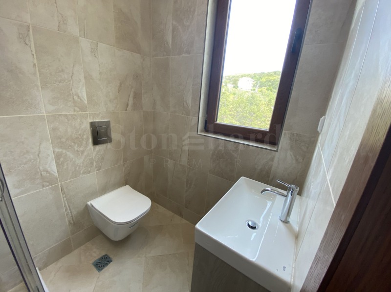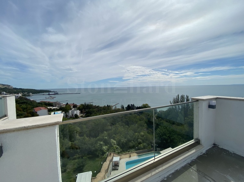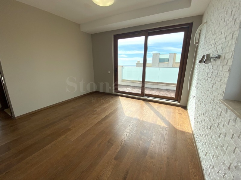 голяма покривна тераса на последния етаж с 180-градусова гледка море и с възможност за монтиране на джакузи.Жилището е в степен на завършеност 'до ключ/необзаведено'.