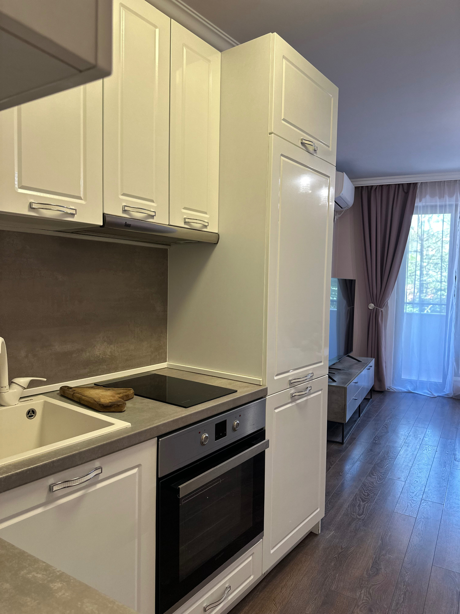 Отдавам под наем светъл и уютен двустаен апартамент, разположен на 2-ри етаж в нова, малка бутикова сграда на тиха улица в непосредствена близост до Новотела.