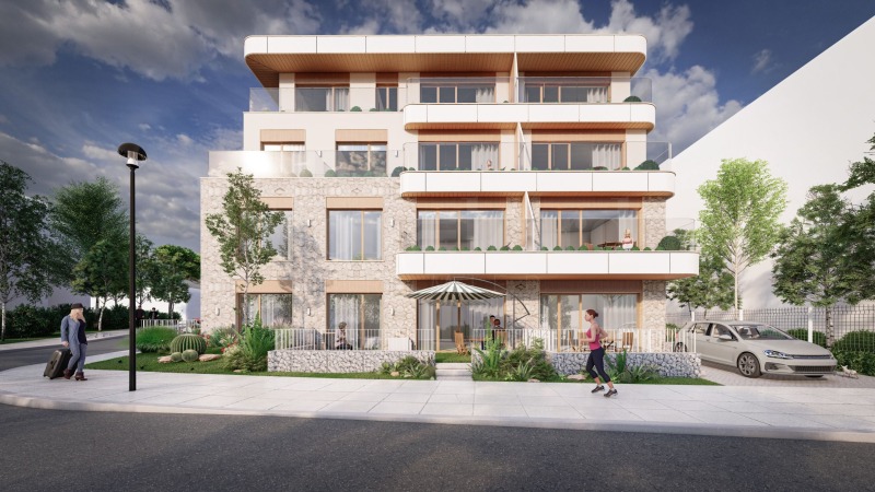 Представяме за продажба двустаен апартамент в нова, кокетна сграда на 2 мин пеша от плажа в Черноморец.