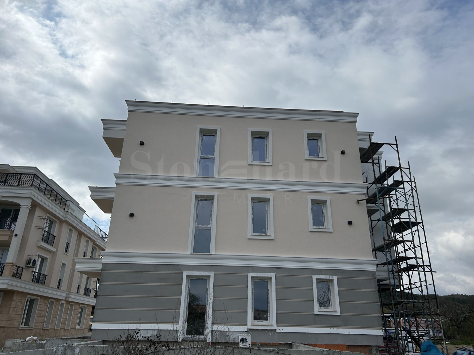 Сградата е разпределена на три жилищни етажа с подземен гараж, асансьор, с частни дворове към апартаментите на първия етаж и просторни покривни тераси на 4-то ниво, специално към апартаментите на третия етаж. Фасадата е подбрана в стила на вече построената, съседна сграда на инвеститора. Отличава се със стилен архитектурен дизайн в неокласически стил, с красиви арки и елементи, характерни за средиземноморските райони от периода на класическата античност.