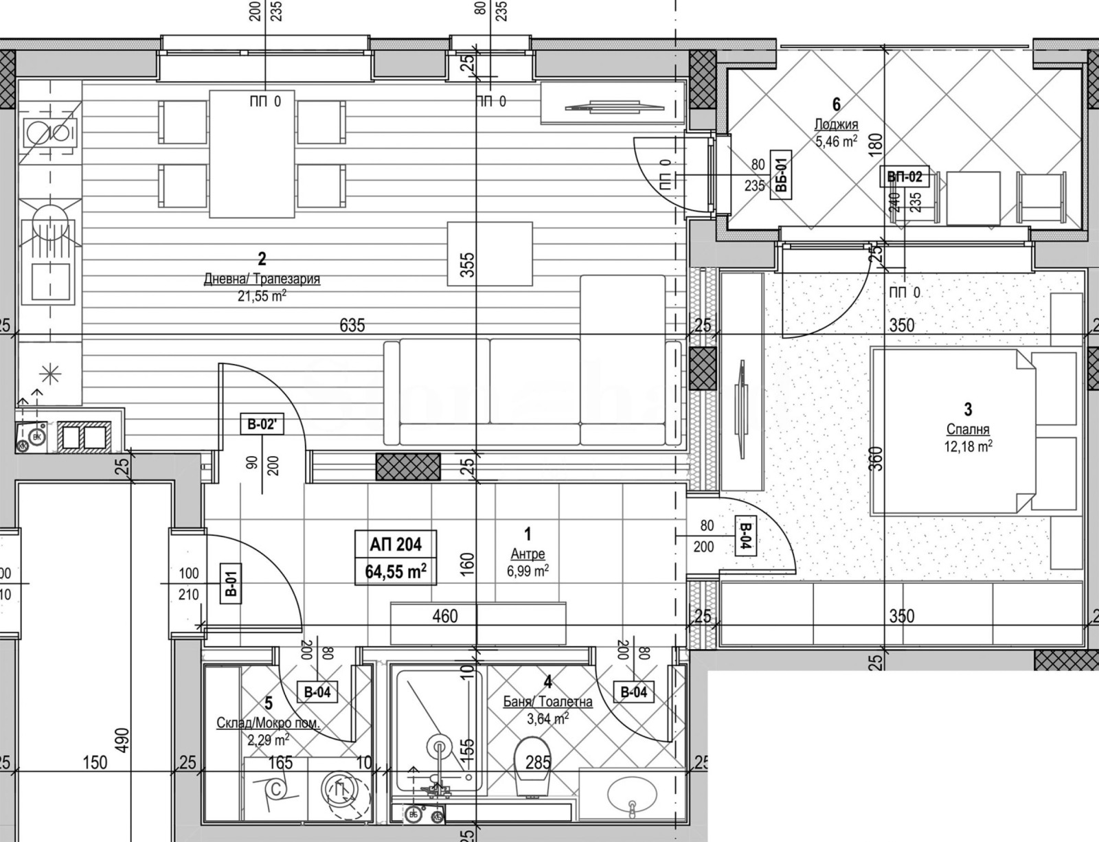 тераса.Жилището се издава в степен на завършеност по БДС, като има опция за довършване 'до ключ' и обзавеждане с различни варианти атрактивни интериорни проекти.