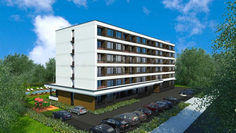 Представяме двустаен апартамент за продажба, част от нов комплекс с басейн и удобства в центъра на Слънчев бряг.