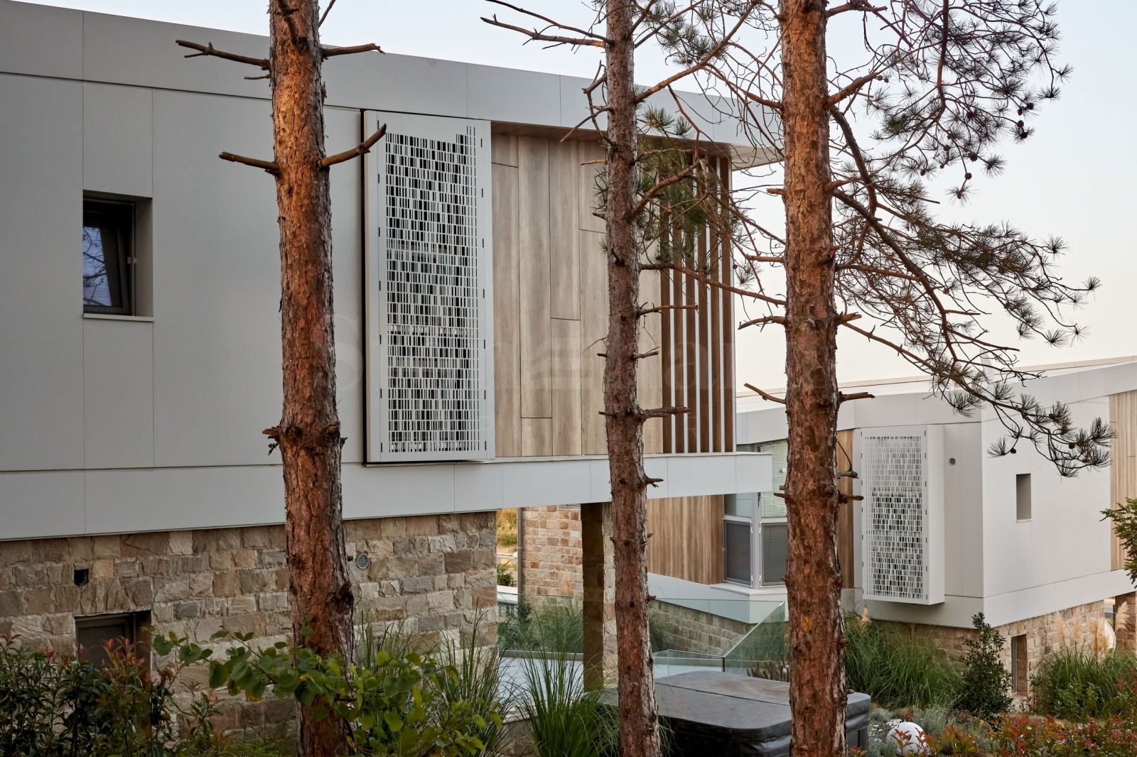 Комплексът има ограда, като достъпът ще се осъществява посредством автоматична бариера. Паркирането ще се извършва в долната част на комплекса, а достъпът до къщите е по централна алея, с предвидени рампи за удобно придвижване. В горната част, където комплексът е тих и обгърнат от боровата зеленина, е предвиден кът за релакс и детски съоръжения, за игри за цялото семейство, барбекю и зона за хранене и забавление на открито, с приятни гледки към морето. Дворното пространство ще бъде озеленено и ще се допълва с ефектно осветление.