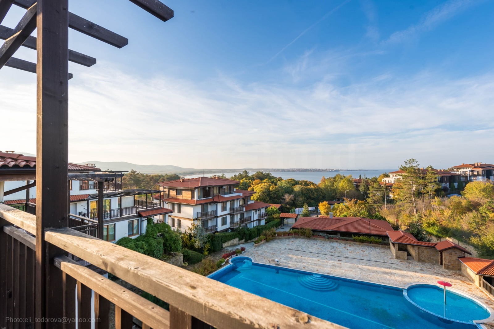 Имотът се намира на 4-ти, последен етаж в Корпус 'В' и се състои от обширна дневна с кухненски бокс и зона-трапезария, 3 спални, 3 комбинирани бани/тоалет, 2 панорамни тераси с обща площ от 109.39 кв.м, с красива гледка към гората, басейна и морето.
