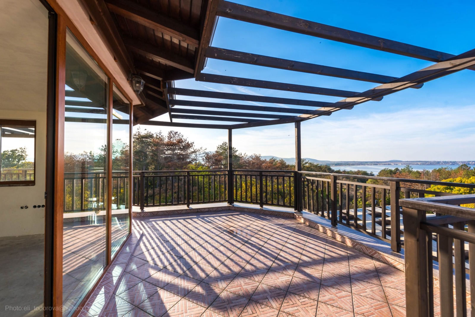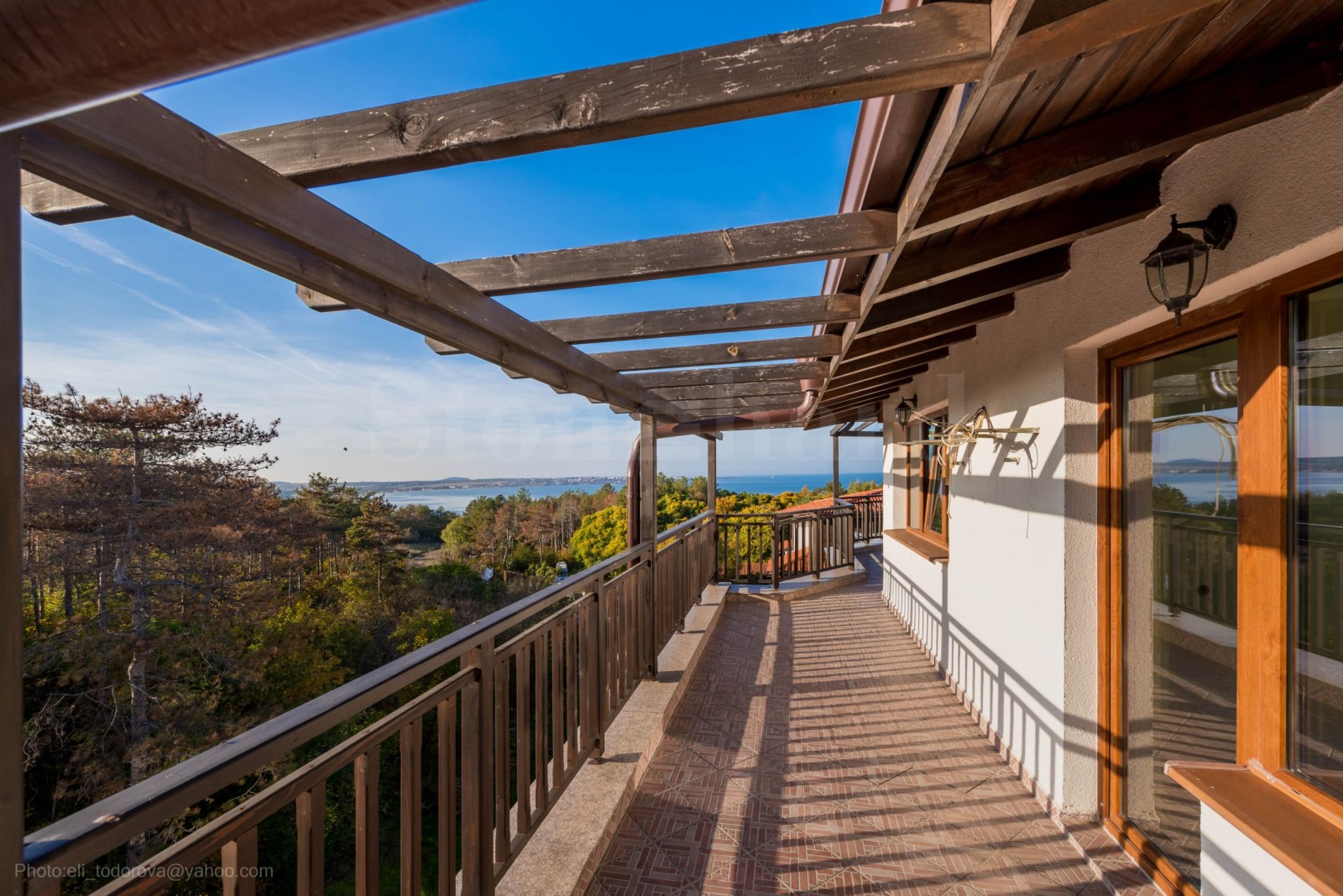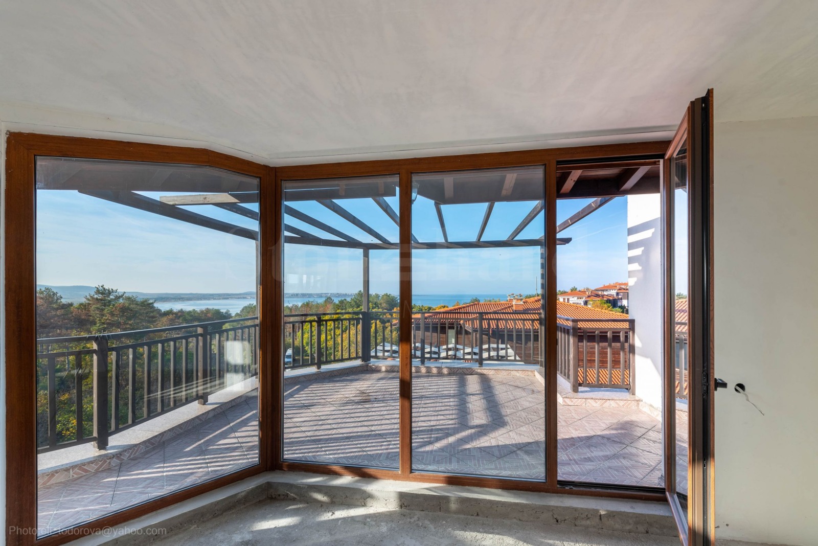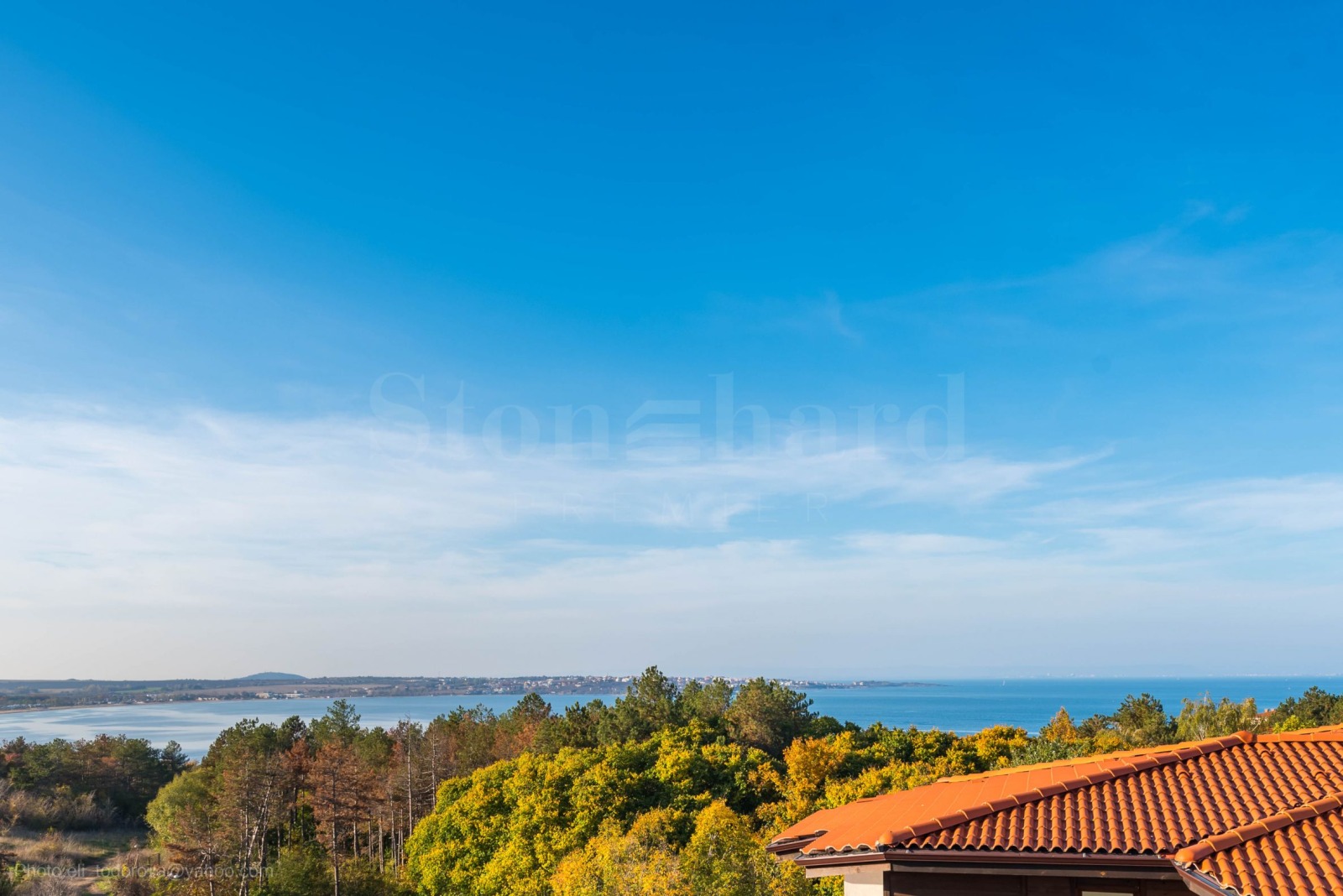 Имотът се намира на 4-ти етаж и се състои от коридор, дневна с кухненски бокс, 2 спални, 2 комбинирани бани с тоалет, голяма панорамна тераса от 53.6 кв.м, с фронтална гледка към боровата гора, красивия залив и плаж, към хоризонта към морето.