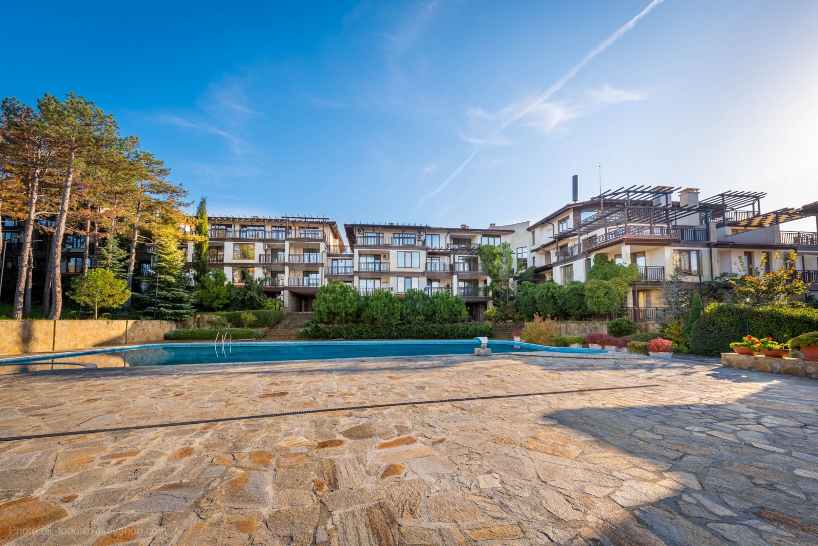 Комплексът съответства на 5-звездните стандарти на европейските курортни комплекси и предлага първокласни удобства за най-комфортното обитаване и отдих: практични, луксозни жилища висок клас ново строителство, с отлични материали и техники, използвани по време на строителството и с минимални разходи за експлоатация, асансьори, подземен и открит паркинг, басейн, фитнес и СПА, ресторант, охрана и поддръжка. Жилищата са разположени в 4-ри секции на 4-ри етажа, с малък брой апартаменти на всеки етаж.