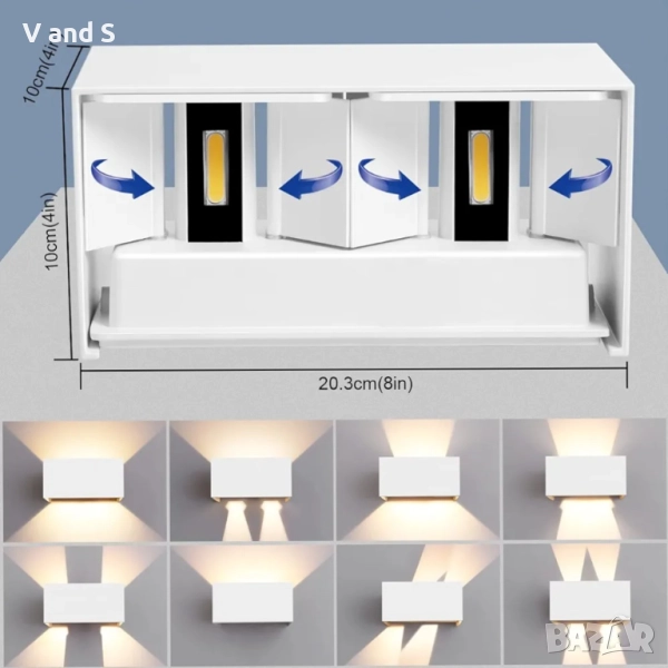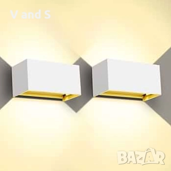 Стенна лампа 20w 2 броя комплект,за вътрешна/външна употреба, 3000K топло бяла светлина, цена за