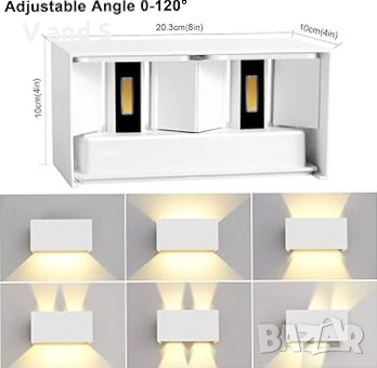 Ledmo 20W Стенна лампа за вътрешна/външна употреба, 3000K топло бяла светлина, модерна LED лампа с регулируем ъгъл на лъча, IP65, водоустойчива