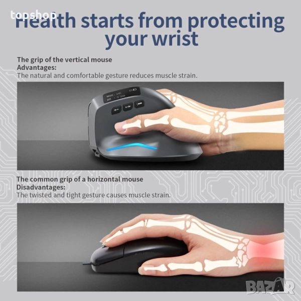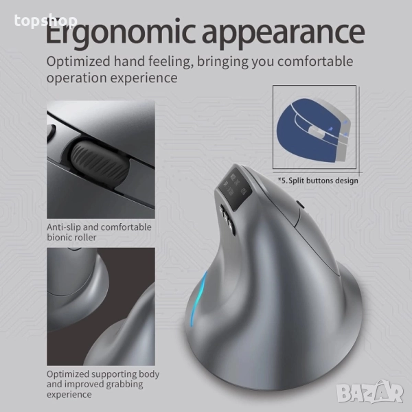 Чисто нова Docooler F-26C 2.4G Безжична Вертикална Ергономична Bluetooth Оптична Мишка, 4 DPI ...