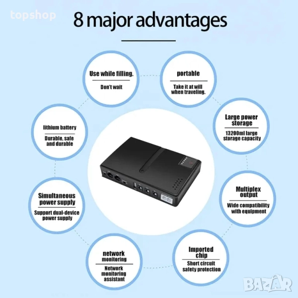 НОВО, ТЕСТВАНО UPS захранване, DC1036P 36W 10400mAh непрекъсваемо с 6 изхода, USB 5V DC 5V 9V 12V POE 15V 24V интелигентна UPS система
