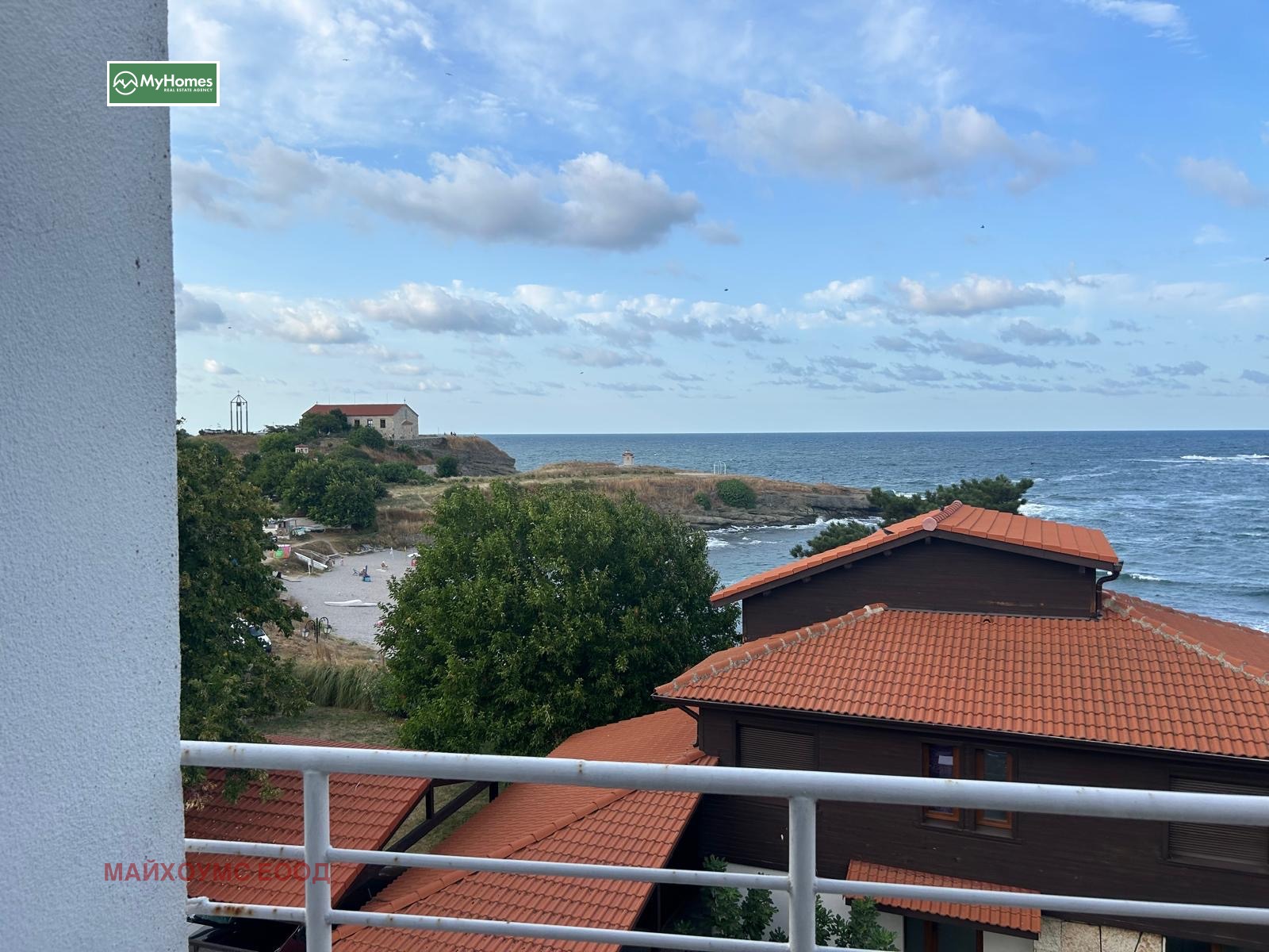 Къщата е измазана отвън, с изолация, нов покрив, сменени дограми, нови ВиК и електрически инсталации, със самостоятелен водомер, на партерно ниво е частично завършена, има бойлер в килера, завършена баня с тоалетна, останалата част е на замазка. Къщата е ситуирана на втора линия от морето и от терасата в подпокривното пространство се откриват гледки към морето. Малко дворче около къщата, ограда. С ключ в агенцията, за контакт Миглена Драготинова, 0877 009 087