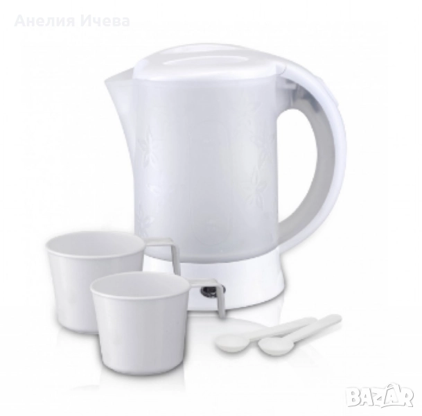 Обем: 0,6 литра. Вграден нагревател от неръждаема стомана. Защита против напълно изкипяване на водата. Автоматично изключване при кипване на водата. Прозрачен корпус със скала за нивото на водата. Извито цвете върху корпуса. Две чаши и две лъжици. Захранващо напрежение 220-240V~, 50/60Hz. Мощност: 600W;