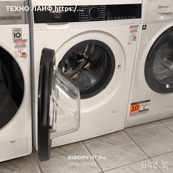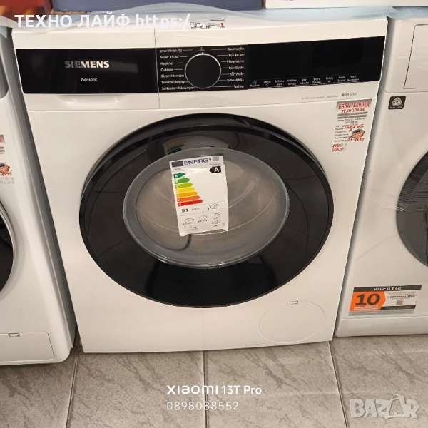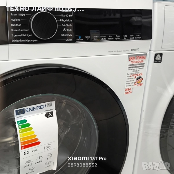Пералня SIEMENS iQ500 WG56G2Z40 10 кг, 1600 об./мин., Енергиен клас А. Нов уред внос от Германия. Гаранция 36 месеца! Клас на енергийна ефективност: А Капацитет: 10 кг Максимални обороти на центрофуга: 1600 Ниво на шум: 73 dB Опция VarioSpeed: изберете колко време искате да продължи цикълът на пране. С varioSpeed можете да ускорите цикъла на пране или да изберете бърза програма (59, 30 или 15 минути). Можете също да зададете часа ръчно с помощта на myTime. Система против петна: премахва четири от най-често срещаните видове петна – вино, мазнина, кръв и трева – без никакви добавки или ръчна предварителна обработка. Чрез регулиране на температурата на водата, скоростта на барабана и времето за накисване, всеки тип петно се третира специално. Програма SmartFinish: използва нежна, но ефективна пара, така че в допълнение към нормалното пране дори силно намачканите ризи и блузи стават значително по-гладки. Това прави гладенето почти ненужно, но поне за краткотрайна употреба вместо ежедневна задача. iQdrive мотор: независимо дали става въпрос за по-малко потребление на енергия със същата производителност, кратки времена на програмата с най-добри резултати или приятно тихо дори при най-високите обороти на центрофугиране – нищо от това не е проблем за безчетковия iQdrive мотор. WaterPerfect Plus: осигурява максимална ефективност на водата. Системата не само разпознава вида текстил, но и точно съответното количество зареждане в 256 степени. В зависимост от тези два фактора се определя необходимото количество вода. WaterPerfect Plus постига перфектни резултати при пране с оптимална консумация на вода при всеки цикъл на пране. Система AquaStop: в случай на повреда, водоподаването спира. Програми: – Памук – Синтетика – Кратка 15/30-минутна програма – Деликатни дрехи – Смесено пране (памук и синтетика) – Вълна – Програма хигиена – Изплакване – Центрофуга/Източване – Програма поддръжка на барабана LED дисплей Предварителен избор на начален час Показване на оставащото време Заключване за деца Размери в/ш/д в см: 84,5/59,8/59 Тегло: 78 кг Гаранция: 3 години **Техно Лайф** е магазин, специализиран в бялата техника произведена за немския пазар, продаваме доказани марки и модели с гаранция за качество и добри цени! Нови уреди! В Германия електроуредите са с много по-високо качество от тези уреди, които са произведени за българския пазар, там се произвеждат с най-високо качество! Бяла Техника Техно Лайф предлага точно това което се търси от всеки българин да е ново, евтино, качествено, с гаранция и с бърза доставка. Ние сме на среща :) Всеки уред е избран лично от нас за да няма забележка която да дразни окото. Обзавеждаме вашите недвижими имоти с бяла техника, включително: перални, сушилни, хладилници, фризери, съдомиялни машини, готварски печки, и всички необходими домакински уреди. Нашите клиенти са доволни от досоставките и доброто обслужване, което получават. Ако имате конкретни въпроси или търсите определен уред, можете да се свържете директно с магазина или да го посетите на място адрес: гр. Варна бул.Сливница95г. Телефон за връзка: 0897 088 552 Имате ли нещо конкретно предвид, което търсите? 😊