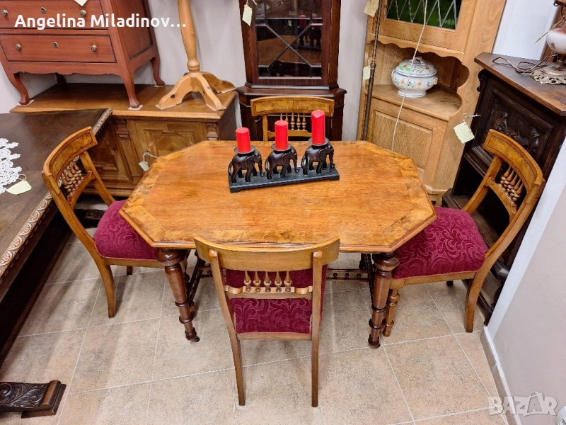 Античен Викториански к - т за трапезария маса с 4 стола