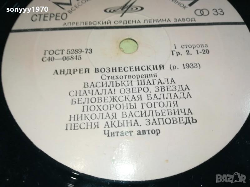 АНДРЕЙ ВОЗНЕСЕНСКИЙ-ПЛОЧА 0309251911 → Обява 51596315