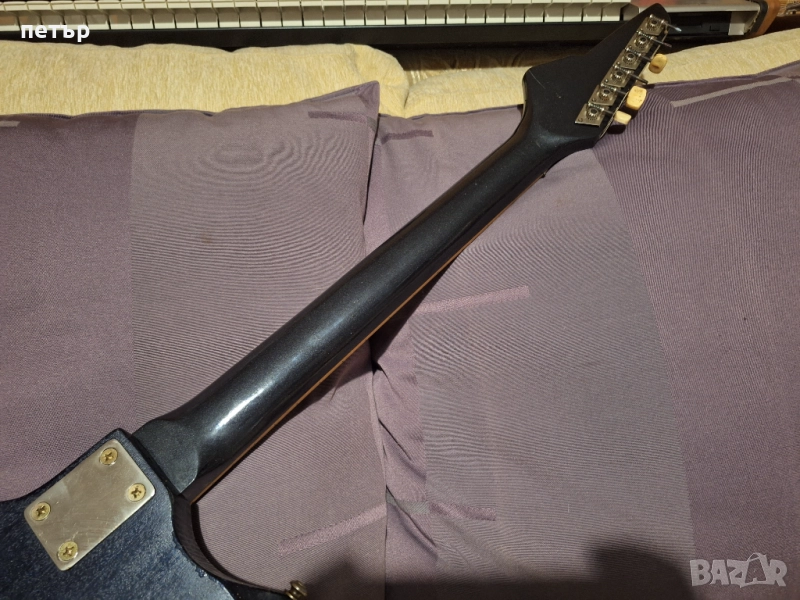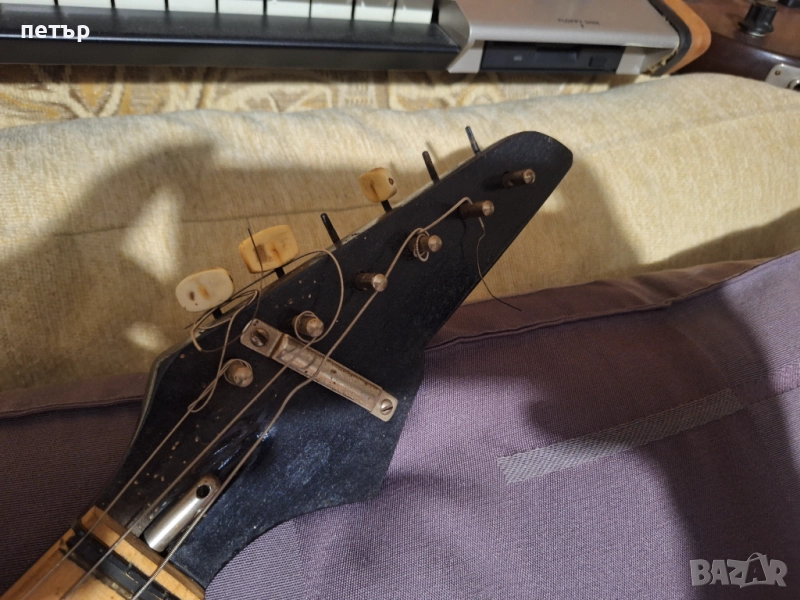 Китарата е пребоядисана.Иначе е здрава и грифа е прав.Става за интериор,проект и за ползване след реставрация. Лично предаване.