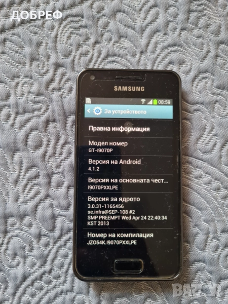 Дядото на моя телефон - Samsung I9070 Galaxy S Advance се води нещо като по-малкия брат на галакси с2, от добро семейство са. 4 инчов дисплей, Super AMOLED капацитивен тъчскрийн, Вибрация, MP3, WAV мелодии