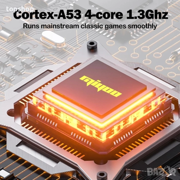 Подобрен чип: Miyoo A30 използва четириядрен Cortex-A53 усъвършенстван чип, основната честота е до 1.3 GHz, който може да реши проблема с изпускането на кадри в играта, да стартира играта перфектно и да я направи по-стабилна.