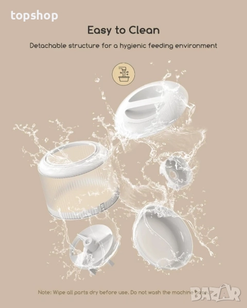 【Двупосочно аудио и персонализирано обаждане за хранене】Вграденият микрофон и високоговорител ви позволяват да поддържате връзка и да взаимодействате с вашия домашен любимец в реално време, като помагат за облекчаване на тревожността му от раздяла и го развеселяват. Тази функция може също да помогне за успокояването им и предотвратяването на разрушително поведение, ако забележите, че са пакостливи. Можете също така да запишете персонализирано гласово съобщение, за да извикате домашния си любимец за хранене, и съобщението ще се възпроизведе автоматично, когато дойде време за хранене.
