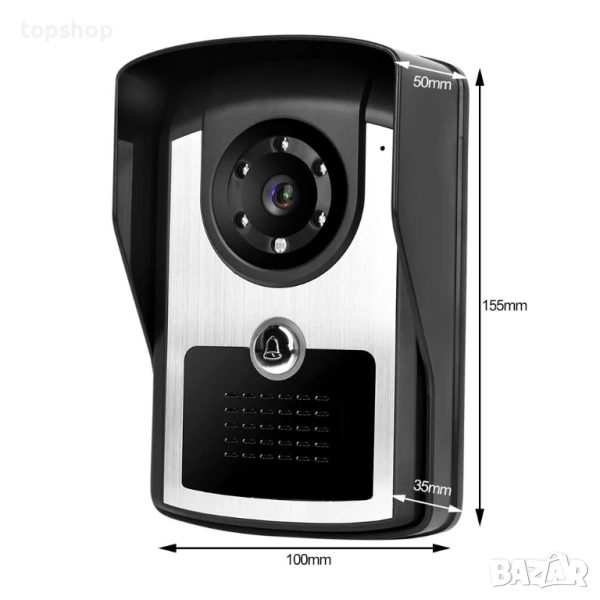 7-инчов видеодомофон с кабел, нов, водоустойчив звънец