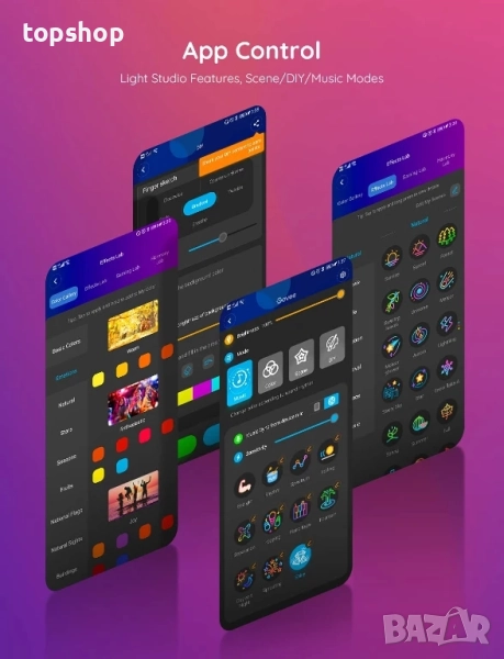 Обширна функция „Направи си сам“: Има различни опции за персонализирано осветление за „Направи си сам“. След това можете да споделите вашата LED лента с променящи се цветове в общността на приложенията. Освен това ще намерите още вдъхновение, за да внесете ярки цветове в Govee Light Studio.