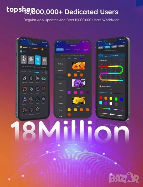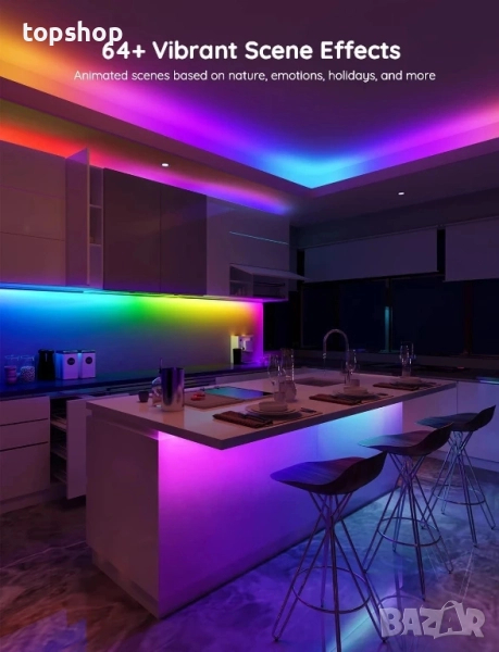 Интелигентни RGBIC ефекти: За разлика от RGB, RGBIC LED лентите представят зашеметяващи сегментирани цветове на линия. Интелигентното LED лентово осветление създава цветно осветление за домашен декор.