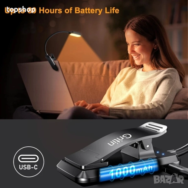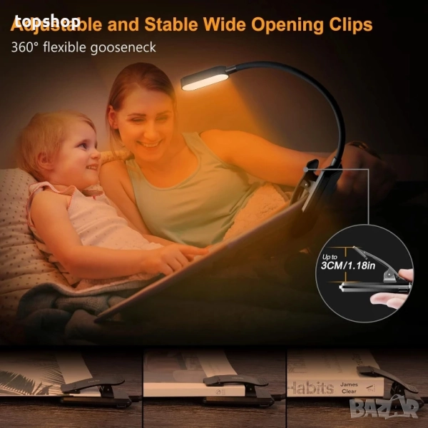 360° гъвкава шия и здрава щипка: 360° огъваща се шия може да се завърта под всякакъв ъгъл, който желаете. Дизайнът с противоплъзгаща скоба го прави здраво закрепен към електронни четци, книги, рафтове и навсякъде другаде, без да се притеснявате за оставяне на следи, драскотини или местене.