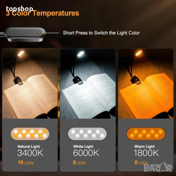 Защита на очите: С професионални LED лампи за защита на очите, те излъчват светлина без трептене, сенки и отблясъци. Естествената мека светлина няма да натоварва очите ви дори след продължителна употреба и ще ви позволи да се насладите напълно на времето си за четене, без да ви безпокои.