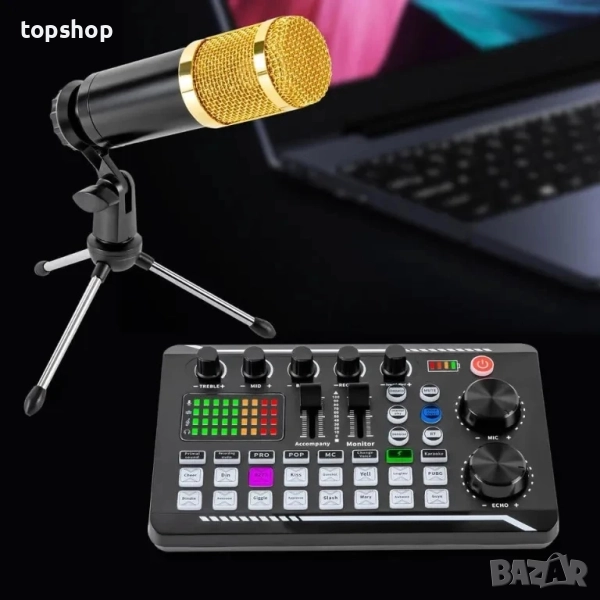 НОВ Комплект звукова карта с кондензаторен микрофон,