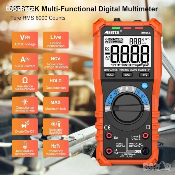 Чисто нов MESTEK DM96A мултицет с NCV функция, TRMS 6000 броя волтметър цифров тестер с автома... → Обява 51598434