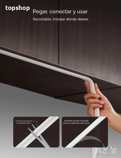 Лесен монтаж: Готов за употреба с персонализирана лепяща основа, проектирана за подобрена лепливост. Може да се реже с маркировки на всеки 8 см, за да се отдадете на вашите „Направи си сам“ навици, като създадете дължината, която отговаря на вашите нужди. Просто отлепете, залепете и отрежете желаната дължина.