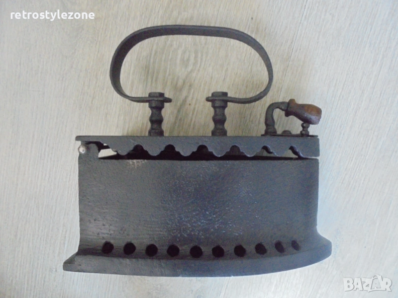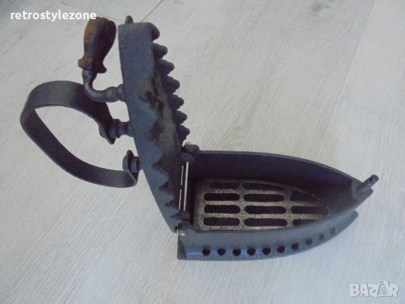 Пред вас е старинна въгленова ютия с оригинална чугунена подложка – истински свидетел на един отминал век.