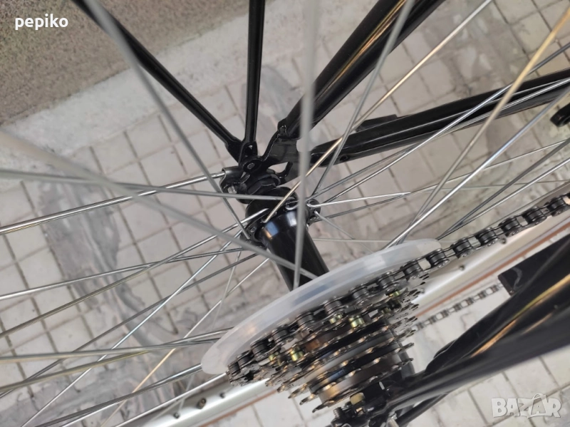 НОВ градски велосипед CENTRAL PARK 28 цола,олекотена стоманена рамка STEEL 28 цола с 7 скорости,фиксирани палцови превключватели MIKRO SHIFT 7,алуминиеви курбели,пластмасови педали,пластмасов цял предпазител на веригата,заден отклонител SHIMANO TOURNEY,задни венци SHIMANO MF-TZ500,задна алуминиева главина,пластмасови калници,заден багажник,никилирано колче на седалката,алуминиева раздвижна лапа на горе и на долу,алуминиево кормило,удобна седалка на релси LOOKIN,силиконови грипове,алуминиеви лостчета на спирачките,предна и задна алуминиеви вибрейк спирачки,алуминиеви двойностенни усилени капли на капси,неръждаеми спици,гуми с безшумен грайфер SCHWALBE SPICER 28 X 1.95,размер на рамката 51 х 61 см.тегло 15,9 кг.