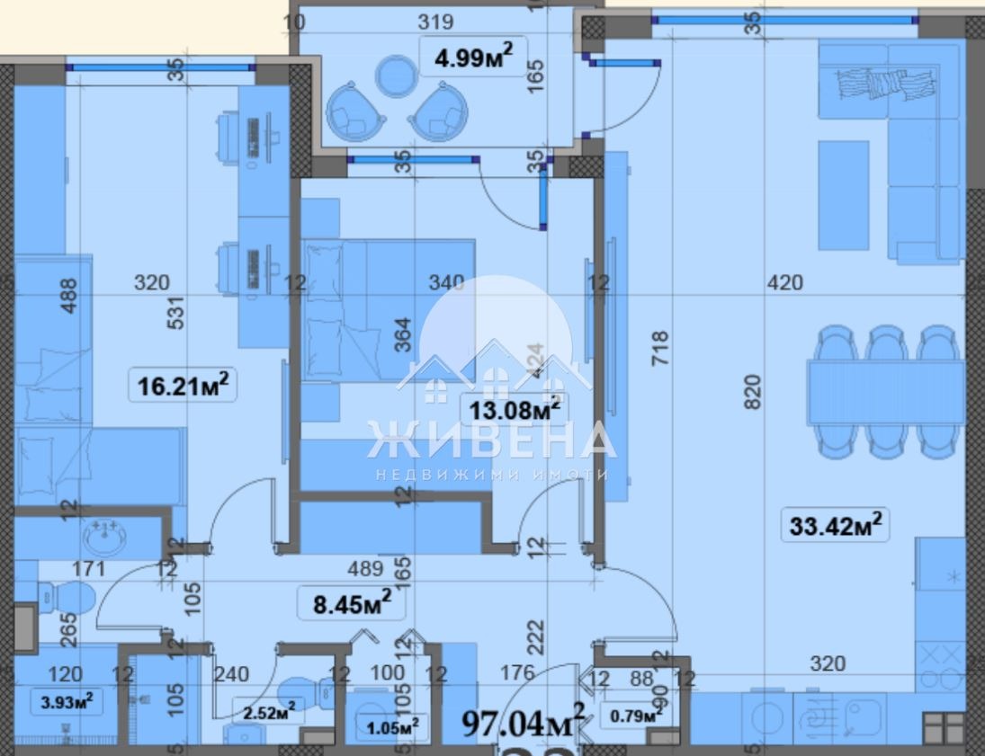 Агенция Живена предлага за продажба голям тристаен апартамент с площ 115 кв.м, разположен на 2-ри етаж в 4-етажна сграда в новоизграждащ се комплекс в местност Манастирски Рид. Разпределението на имота е следното: антре (8.5 кв.м), дневен тракт и трапезария (33.4.8 кв.м), две спални (13.08 и 16.21 кв.м),две бани с тоалетна (4 и 2.52 кв.м), перално помещение (килер) и тераса. За комплекса: в луксозния жилищен комплекс ще бъдат изградени четири елегантни сгради, разположени на парцел с площ от 15 декара. Сградите са четириетажни и ще се отличават с модерен дизайн и прецизно изпълнение, което гарантира комфорт и удобство за всеки обитател. Всяка сграда е проектирана с внимание към детайла, така че да се впише естествено в околната природа, в съчетание с най-новите технологии за строителство, което осигурява висока енергийна ефективност и устойчивост. Терасите и лоджиите на апартаментите са проектирани така, че дори от първите етажи се разкрива директна морска гледка. Жилищния комплекс ще бъде с контрол на достъпа и денонощна охрана. Ще бъдат осигурени и всички съвременни удобства за цялото семейство, включително басейн на три нива, обграден от зеленина и простор, на територия от 1 декар, с изключителна гледка към морето. Детските съоръжения, зонирани по възраст и изградени от естествени и еко материал. Има избор на апартаменти и може да се закупи паркомясто на цени от 18 300 евро и гараж на цена започващи от 23 000 евро. Комплексът се намира в един от най-живописните и магнетични райони в близост до град Варна местност Манастирски рид. Комплексът е ситуиран в сърцето на величествена дъбова гора, само на няколко минути пешеходно разстояние от плажа на курортен комплекс Слънчев ден, известен със своите чисти води и широка пясъчна ивица. Агенция Живена извършва необходимите проверки на имота, който сте избрали, организира всички етапи на сделката до нейното финализиране. Оказваме съдействие за отпускане на банков кредит. Оферта 7446