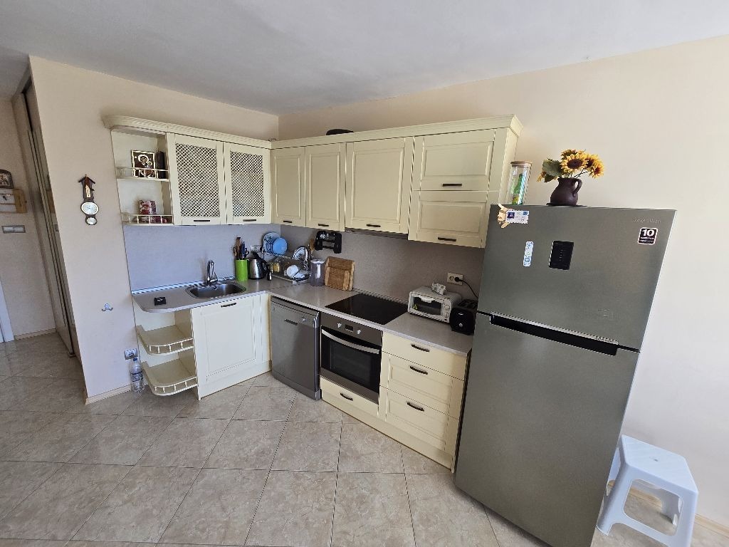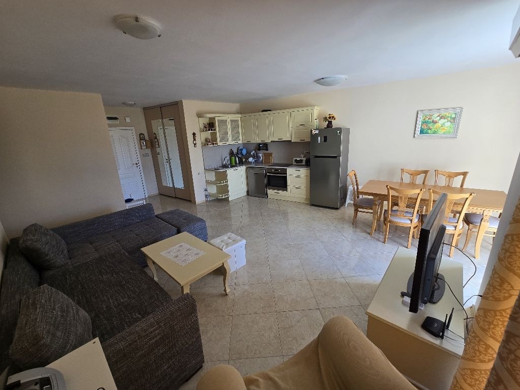 Страхотен тристаен апартамент в г.Царево с гледка море. Апартаментът се състои от два двустайни апартаменти и има възможност за отделяне на трета спалня и има втора баня(зад кухнята). В момента е с разпределение от коридор, голама всекидневна, баня, две спални и голяма тераса с изход от трите стаи. На територията има басейн, СПА, фитнес и подземен паркинг. С възможност за закупуване и на гараж. Има такса поддръжка в размер на 7.5е за м2. Разстоянието до плажа е около 100м. В близост до целогодишен супермаркет и автобусна спирка.