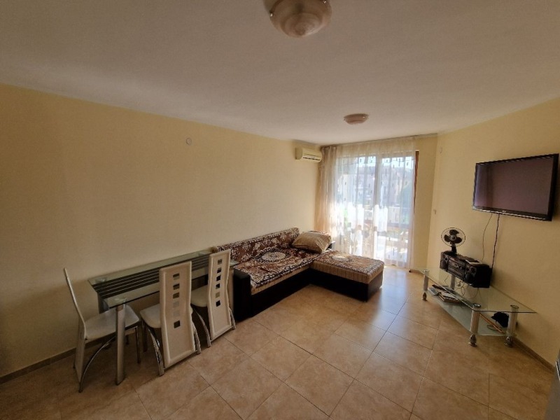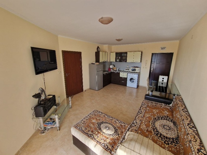 Страхотен двустаен апартамент в с.Равда. Апартаментът е разположен на трети етаж в сграда с асансьор, западно изложение. Има такса поддръжка в размер на 10Е за м2. На територията има няколко басейна, фитнес, СПА център, детска площадка, тенис на корт, тенис на маса, билард и паркинг. Разстоянието до плажа е около 200м. В близост до целогодишен супермаркет и автобусна спирка.